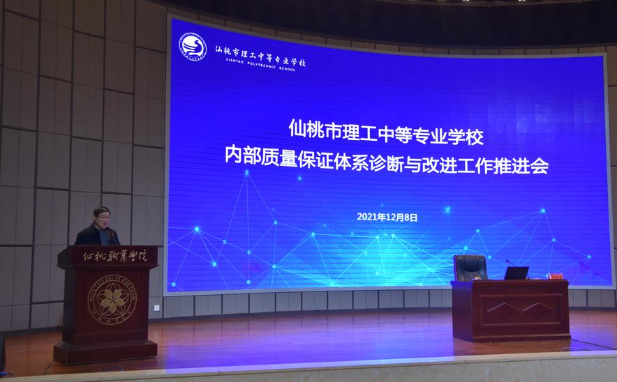 12月8日下午,我校召开内部质量保障体系诊断与改进工作推进会,会议邀请仙桃职业学院质量管理处刘晓菊处长为学校诊改工作作培训指导,会议由校工会主席余年喜主持,全体校领导及教师参会。