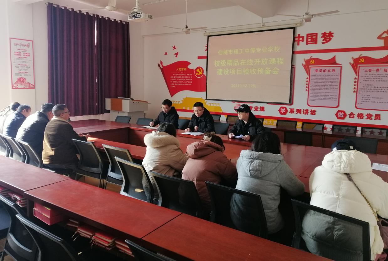 12月28日上午,我校召开校级精品在线开放课程建设项目验收预备工作会在中专大楼308开展,教科室杜佐正科长主持,副校长向华参会。