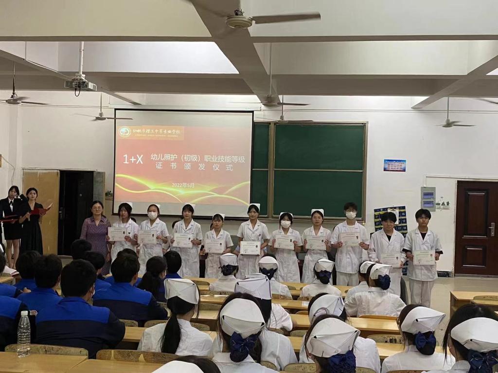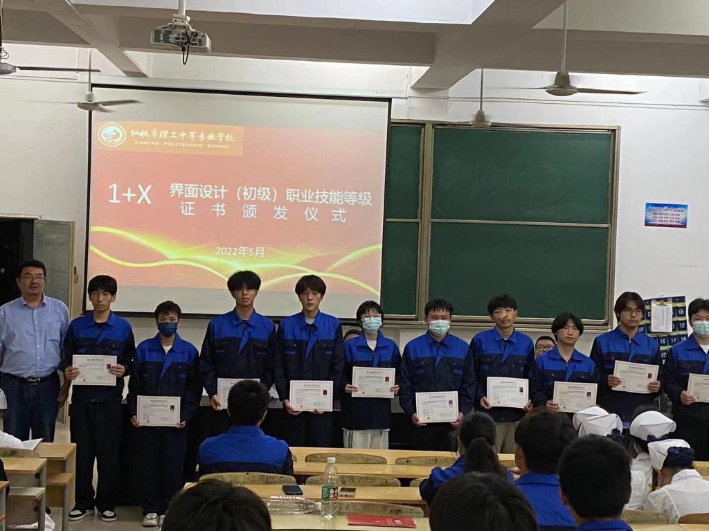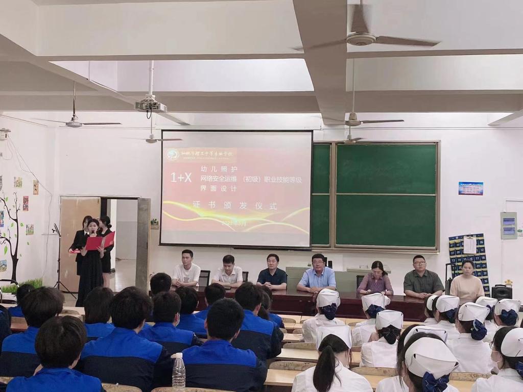 为贯彻落实提质培优行动计划,推进1+X证书制度试点落地落实,树立技能先进典型、激发学生学习动力,学校于5月27日及30日,分别举行汽车运用与维修、幼儿照护、网络安全运维及界面设计4个职业技能等级证书(初级)颁发仪式,来自4个专业的220名学生受到表彰。通过此次活动,极大提高了职业技能等级证书在学生心中的地位,增强了学生信心,鼓舞了学生士气,形成了良好“争先争进”局面。