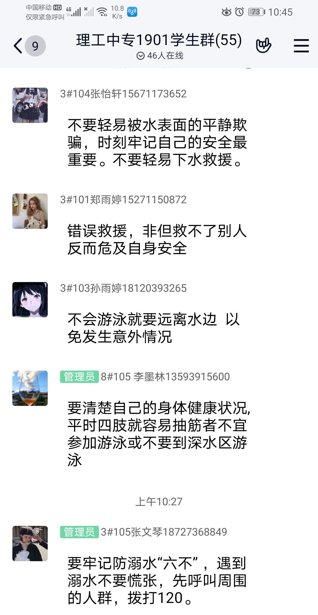 随着假期到来,天气逐渐炎热,全国也进入梅雨季,溺水事件又将进入高发时间段。为加强学生溺水安全防范意识,保障学生假期安全,7月8日上午,仙桃市理工中等专业学校组织全校各班级开展了线上“预防溺水,珍爱生命”主题教育班会。