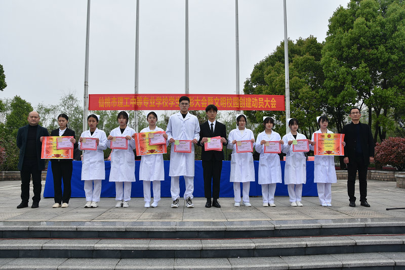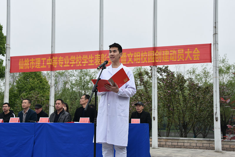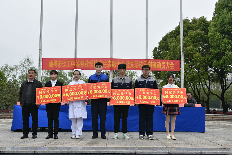 会上,对2020年中等职业教育国家奖学金获得者、期末考试优胜学生、五好学生、优秀团员、优秀团干部、优秀班干部、优秀辅警队员、优秀团支部、优秀班集体进行了表彰并对文明校园创建发起了倡议。