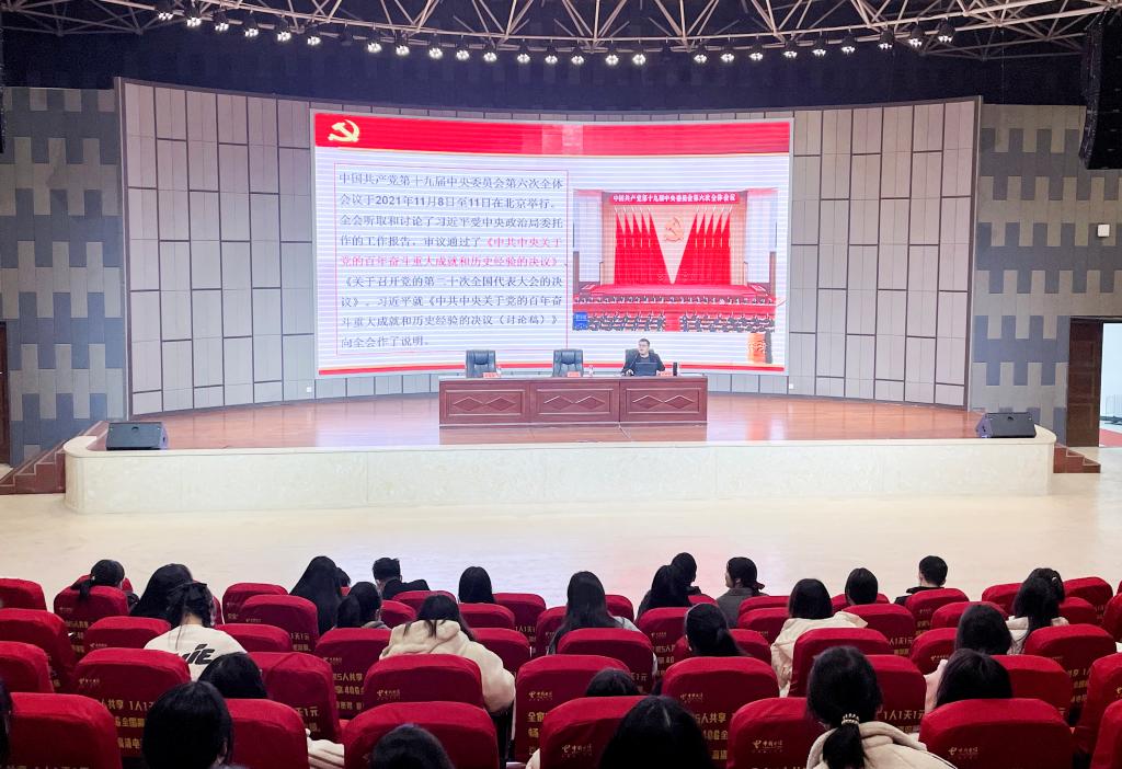 12月29日下午,学习贯彻党的十九届六中全会精神“强国新生代·青年学习会”宣讲会在多功能厅举行,湖北省青年宣讲团成员刘明辉作宣讲报告,学院师生代表150余人参加宣讲会。
