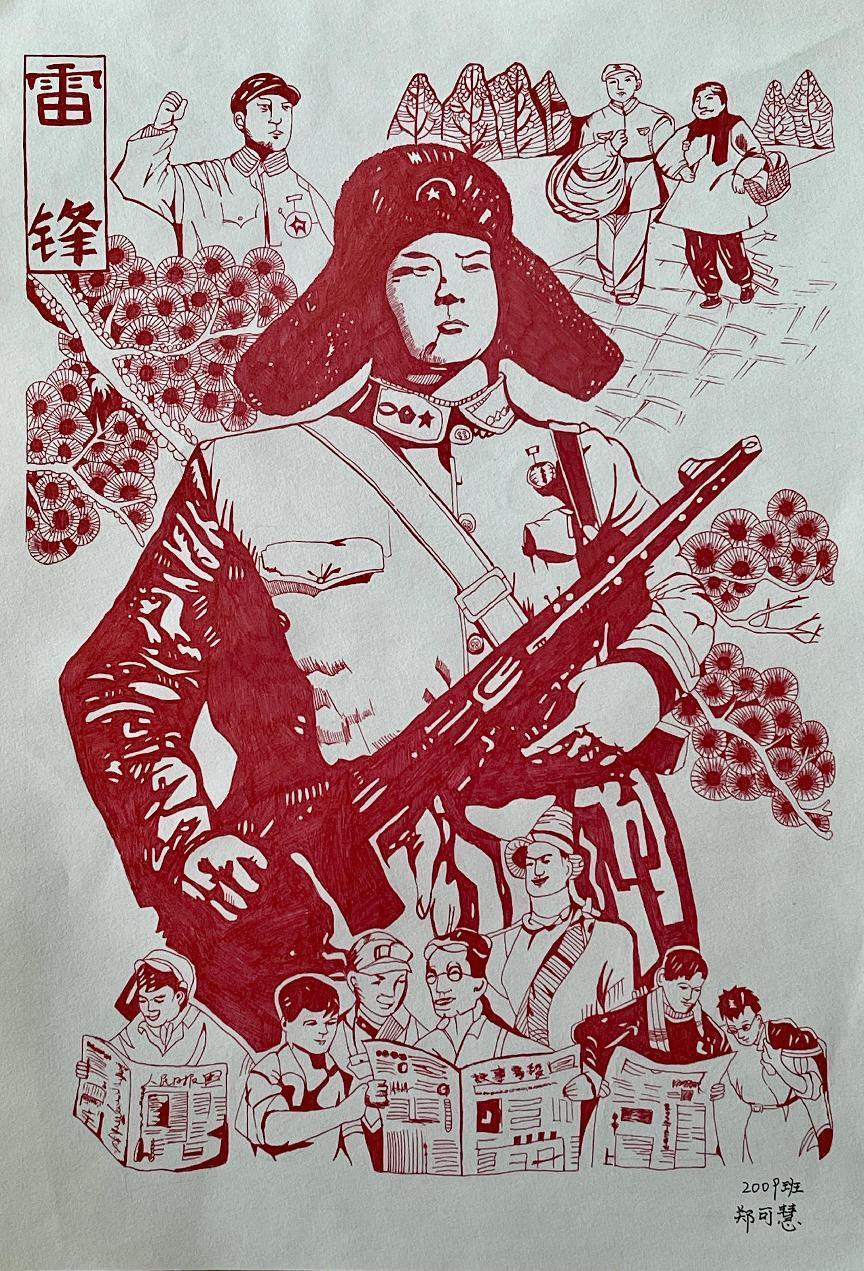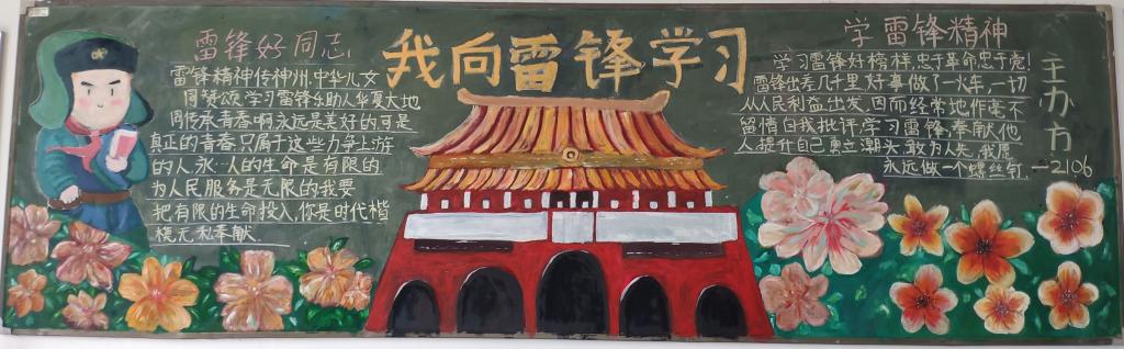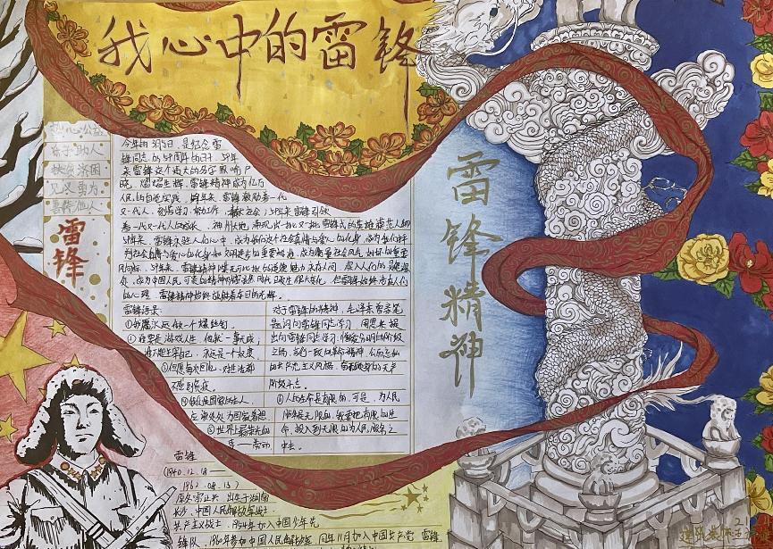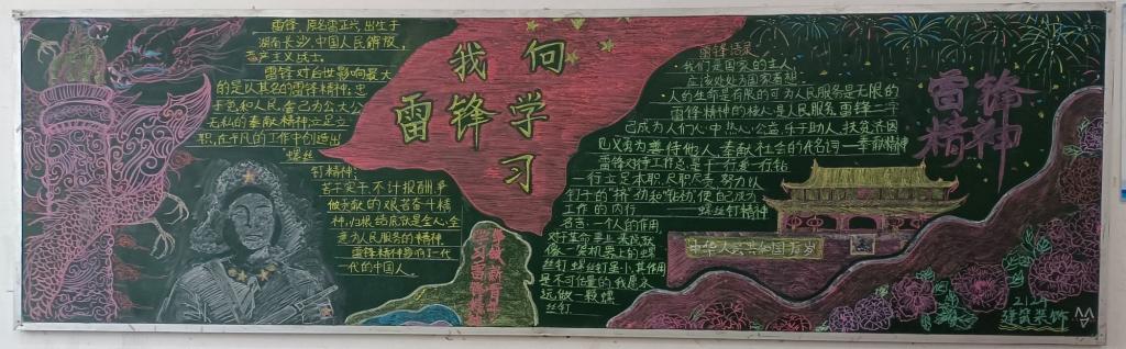 各班级以“弘扬雷锋精神,砥砺奋斗青春”为指导思想,开展由黑板报、剪纸、绘画、手抄报等多种形式构成的雷锋文化宣传。营造浓郁的学雷锋活动氛围,让当代青年们由衷的接纳雷锋、认同雷锋,自觉践行着雷锋精神。