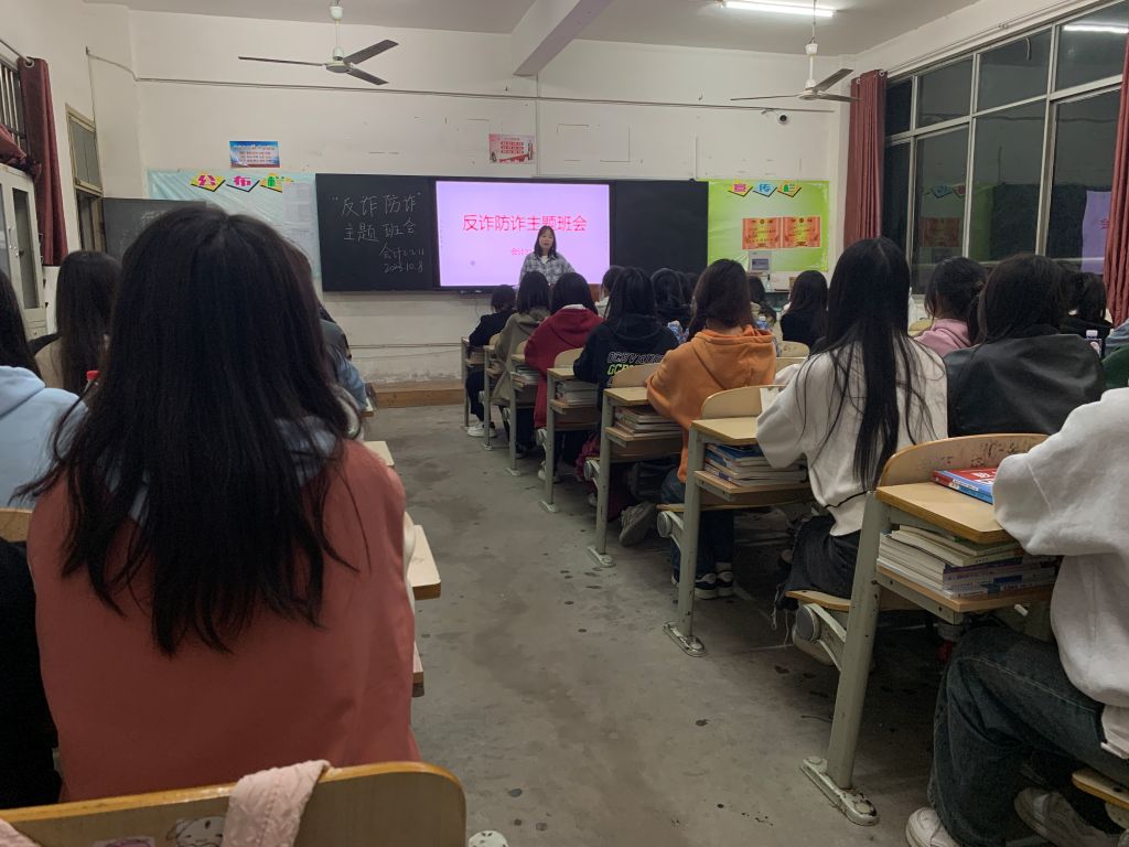为进一步提高学生的反诈防诈意识,增强反诈防诈能力,10月8日晚,我校各班级采取多种形式开展了以“反诈防诈”为主题的安全教育班会。