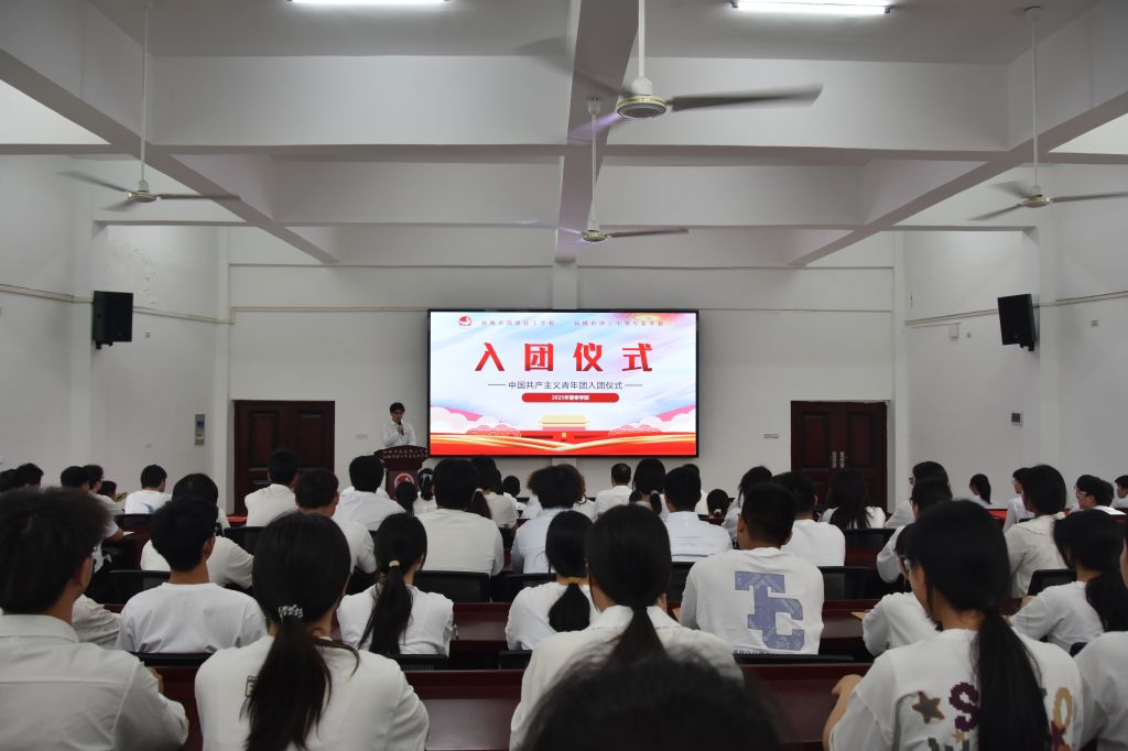 仪式在国歌声中启幕。学生科科长汤旺宣读新团员名单。校长王浩为新团员代表佩戴团徽,象征身份的团徽成为激励他们奋进的动力。