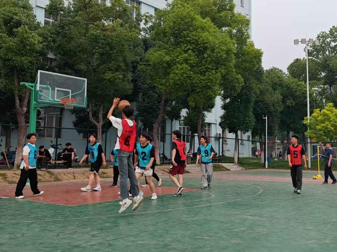 篮球场上奋力拼搏