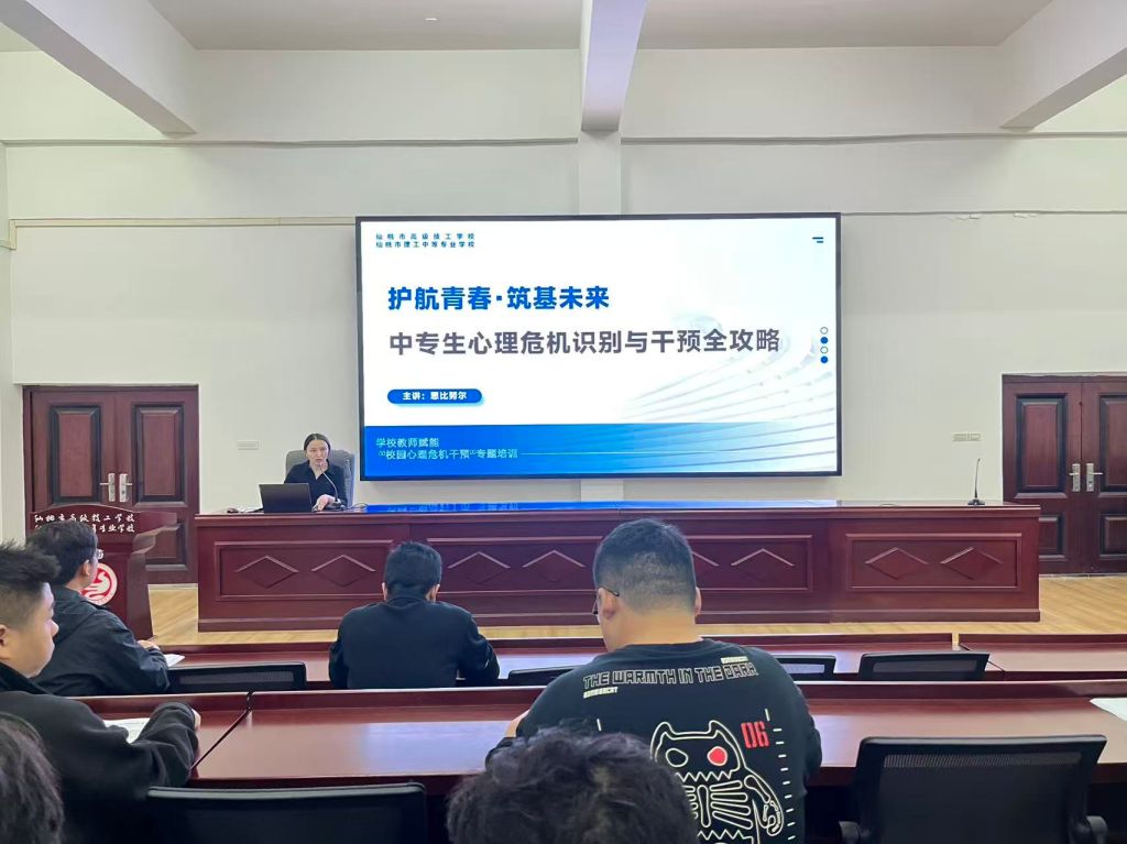为切实加强我校心理健康教育工作,提升班主任队伍识别与应对学生心理危机的能力,2025年10月15日下午,我校特邀仙桃职业学院心理中心资深教师思比努尔,为全体班主任讲授“中专生心理危机识别与干预全攻略”专题讲座。