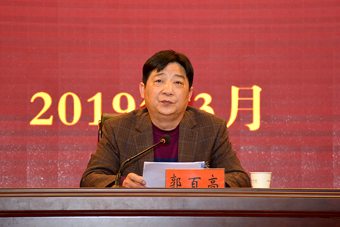 郭百高在讲话中说,全院上下要深入学习贯彻习近平新时代中国特色社会主义思想,认真践行新时代党的建设总要求,把握工作重点,明确工作要求,全面提高党建工作质量,为学院高质量发展提供坚强的政治保证。一是旗帜鲜明突出政治统领,深刻认识党的建设极端重要性。学院党的建设事关办学方向、事关人才培养质量、事关政治生态,是办学治校的基本功,必须始终摆在更加突出的位置,一以贯之地抓紧抓实。二是理直气壮树牢主责主体,牢牢把握学院党建工作重点。以实施“十个一”工程为重点,切实抓好基层组织建设;以落实责任制为重点,切实抓好意识形态工作;以鼓劲加油为重点,切实抓好宣传文化工作;以画好同心圆为重点,切实抓好统战工作;以理论武装为重点,切实抓好思想政治工作。三是坚持不懈加强正风肃纪,营造风清气正的办学治校环境。要增强纪律规矩意识,讲政治,讲忠诚,讲规矩。要增强责任担当意识,敢于担当,善于担当,乐于担当。要增强自查自纠意识,查思想,纠正理想信念不牢的问题;查纪律,纠正有令不行的问题;查作风,纠正不严不实的问题;查管理,纠正粗枝大叶的问题。要增强问责追责意识,责任传导不能掉链子,严肃问责不能顾面子,面对问责不能使性子,全力履职不能撂挑子。要增强监督整改意识,大胆监督,务实监督,全面监督,对查摆出来的突出问题立行立改、见底见效。