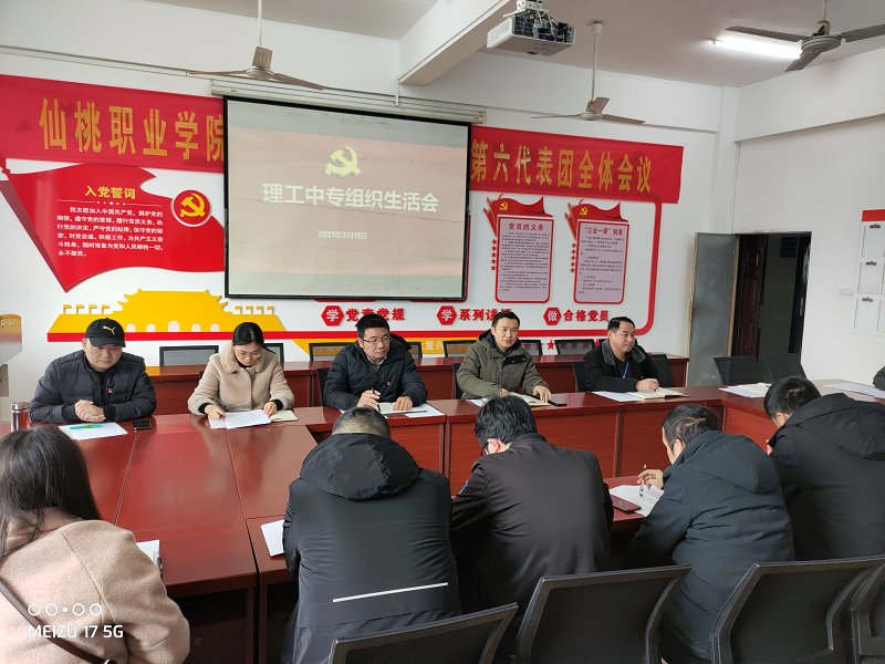 为深入学习贯彻习近平新时代中国特色社会主义思想,认真学习贯彻党的十九届五中全会精神,学习市委九届七次全会精神,提升基层党组织政治功能和组织力,根据学院组织部关于召开2020年度基层党组织组织生活会和开展民主评议党员工作的通知,3月11日,仙桃市理工中等专业学校党总支在党员活动室召开组织生活会和开展民主评议党员工作,会议由学校党总支书记饶剑辉同志主持,全体党员参加会议。