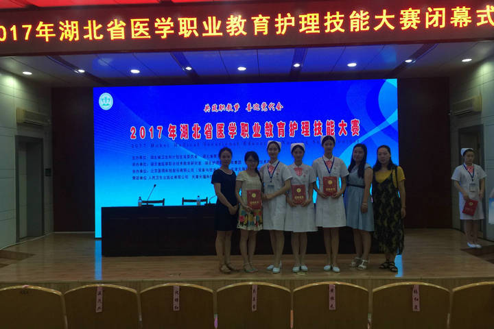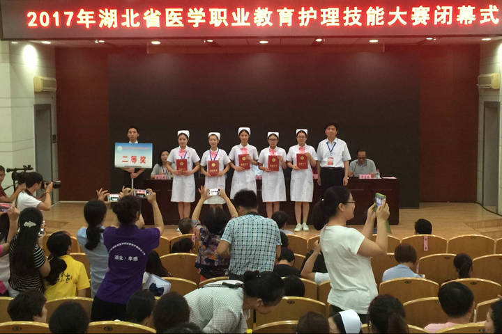 6月10日——11日,我校护理专业学生汪思雅、杨慧、胡庆参加了由湖北省卫生和计划生育委员会和湖北省教育厅共同主办的2017年湖北省医学职业教育护理技能(中职组)大赛。全省有27所学校,34支代表队、102名选手参赛,经过激烈比拼,我校学生凭借扎实的理论知识、娴熟的操作技能、良好的综合素质,赢得了评委专家的肯定,在大赛中荣获个人全能一等奖1项(全省第一名),二等奖1项,三等奖1项;单项一等奖2项,二等奖4项,三等奖2项;我校获团体二等奖。