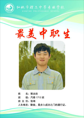 他叫郭永欣, 来自汽修1713班。