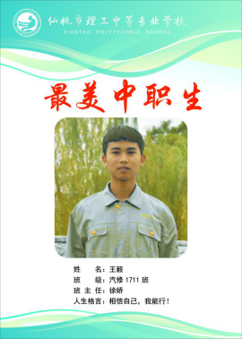 他叫王毅,来自理工中专汽修1711班。