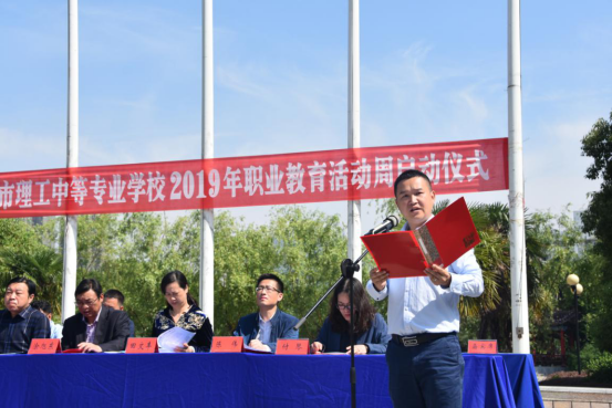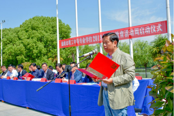 市教育局党组书记、局长蔡涛宣布仙桃市理工中等专业学校2019年职业教育活动周启动