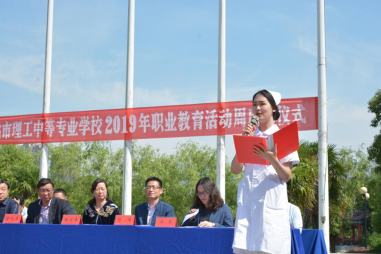 启动仪式上,仙桃市理工中专党总支书记、校长饶剑辉辉宣读了《仙桃市理工中等专业学校2019年职业教育活动周实施方案》,全国护理技能赛项参赛选手李化雨同学在会上发言,仙桃职业学院党委副书记梁晓华、市人社局副局长康中洲分别致辞,市教育局局长蔡涛宣布职业教育活动周启动。