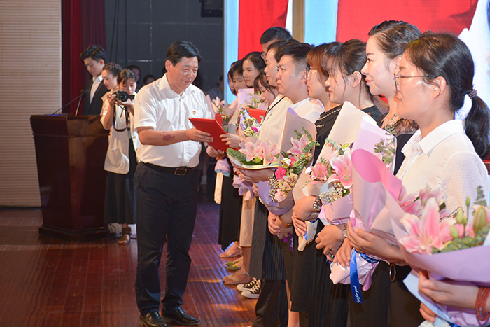 党委书记郭百高为“十佳辅导员”“最美班主任”颁奖