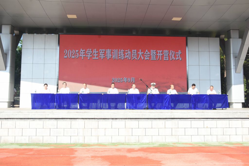 9月16日上午,2025年学生军事训练动员大会暨开营仪式在田径运动场举行。海军工程大学彭诚少校、仙桃职业学院副院长罗功宇、仙桃市高级技工学校校长王浩等领导出席。全体承训教官、相关部门负责人及参训学生参加。