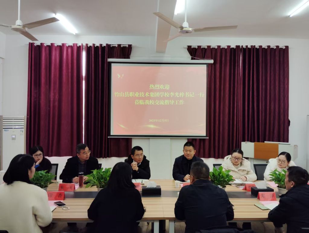 12月5日上午,竹山县职业技术集团学校党委书记李光梓一行来我校考察交流,校长王浩、副校长程芹及部分专业负责人参加座谈。