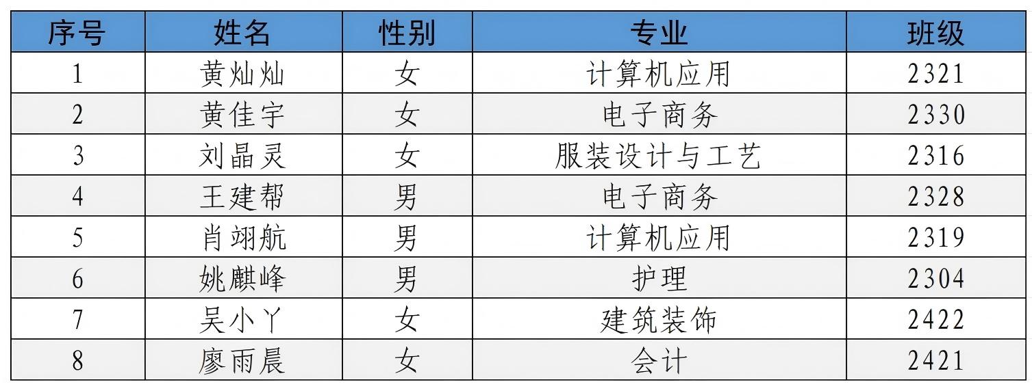 1月14日,教育部、人力资源社会保障部发布《关于2024—2025学年度中等职业教育国家奖学金获奖学生名单的公告》,我校黄灿灿等多名学生获得国家奖学金,具体名单如下:
